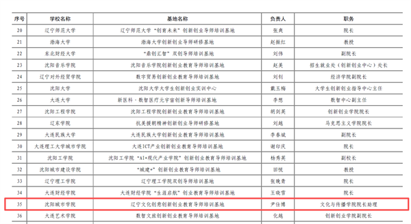 近日,辽宁省教育厅组织开展了2025年辽宁省高校创新创业教育建设项目遴选工作,经专家综合评议,我校成功获批1个创新创业导师培训平台,1个创新创业指导教师团队,3个创新创业特色专业、5门创新创业特色课程以及3门科技成果转化特色培训课程。