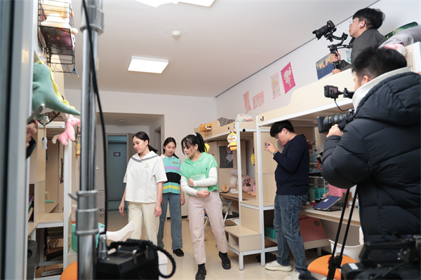 321Action!”镜头前,饰演剧中“周艳红”的蒙古国伊和扎斯格大学学生O.Oyuntsetseg脸上绽放出灿烂的笑容,她所在的“318寝室”,正是近日在蒙古国热播的《大三女生》实景拍摄现场。“以前只在电视里看中国大学的宿舍,今天不但走进实景,还成了剧中人!”她兴奋地说。