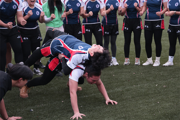 Action!”响起,他深吸一口气,背起“队友” L.Namsaraisuren,在师生们的鼓励声中匍匐前进。每一次手臂前伸、每一次膝盖悬空,都伴随着沉重的喘息。周围的“队友”纷纷聚拢,如同剧情重现,齐声为他加油计数。“坚持住!”“加油!”……呐喊声在宽阔的球场上响起,超越语言与国界的体育精神在每个人心中激荡。“那一刻,我好像真的成了‘熊剑’,”G.Chuluunzangi在拍摄结束后激动地分享道,“背上很重,草皮很硬,但当所有人的声音汇聚在一起推动你时,你真的能爆发出自己都想不到的力量。我不仅是在表演,更是在体验一种永不言弃的精神。这和我们蒙古民族崇尚的坚韧品格高度契合!”