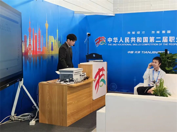 2023年,正在读大三的周禹谏代表辽宁团队出征第二届全国职业技能大赛。回忆备战全国大赛的过程,周禹谏坦言那是一段既艰苦又充实的时光,作为辽宁省该赛事的首位参赛选手,没有前人经验可以借鉴,一切都要从零开始。比赛涵盖前厅接待、客户服务、投诉处理、应急响应等多个模块,每个环节都需要展现出色的专业技能、服务意识和应变能力。为了以最佳的状态参加比赛,他和指导老师王圣文一起,每天进行超过五小时的训练,从仪容仪表到语言表达,从服务流程到细节把控,反复打磨每一个动作和每一句话。这种“把一件事做到极致”的精神,正是“一辈子一件事”执着精神的体现。 在国赛现场,周禹谏沉着冷静,面对评委设置的突发状况,他迅速分析问题,提出合理解决方案,展现出超越同龄人的成熟与专业。最终,他的表现获得了评委和行业专家的认可,最终进入全国前20强。