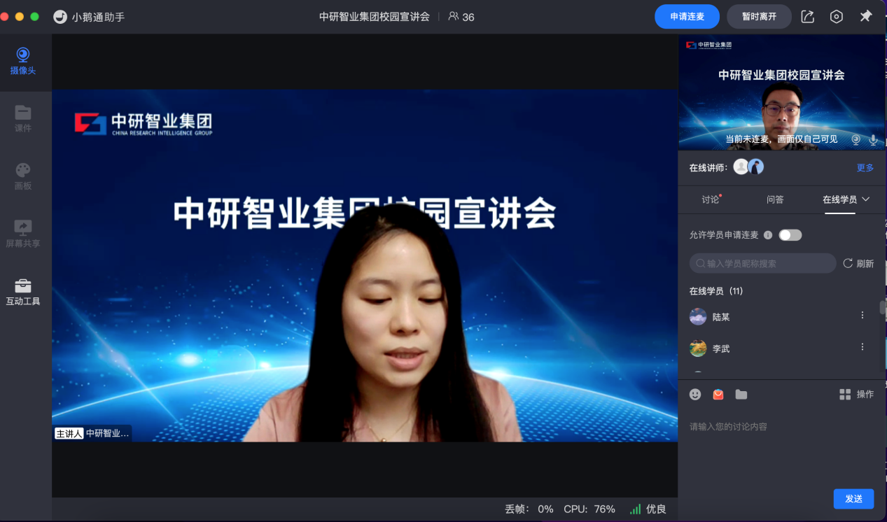 2022年4月28日,建筑工程学院组织城乡规划专业毕业生参加中研智业规划设计有限公司线上专场招聘会。