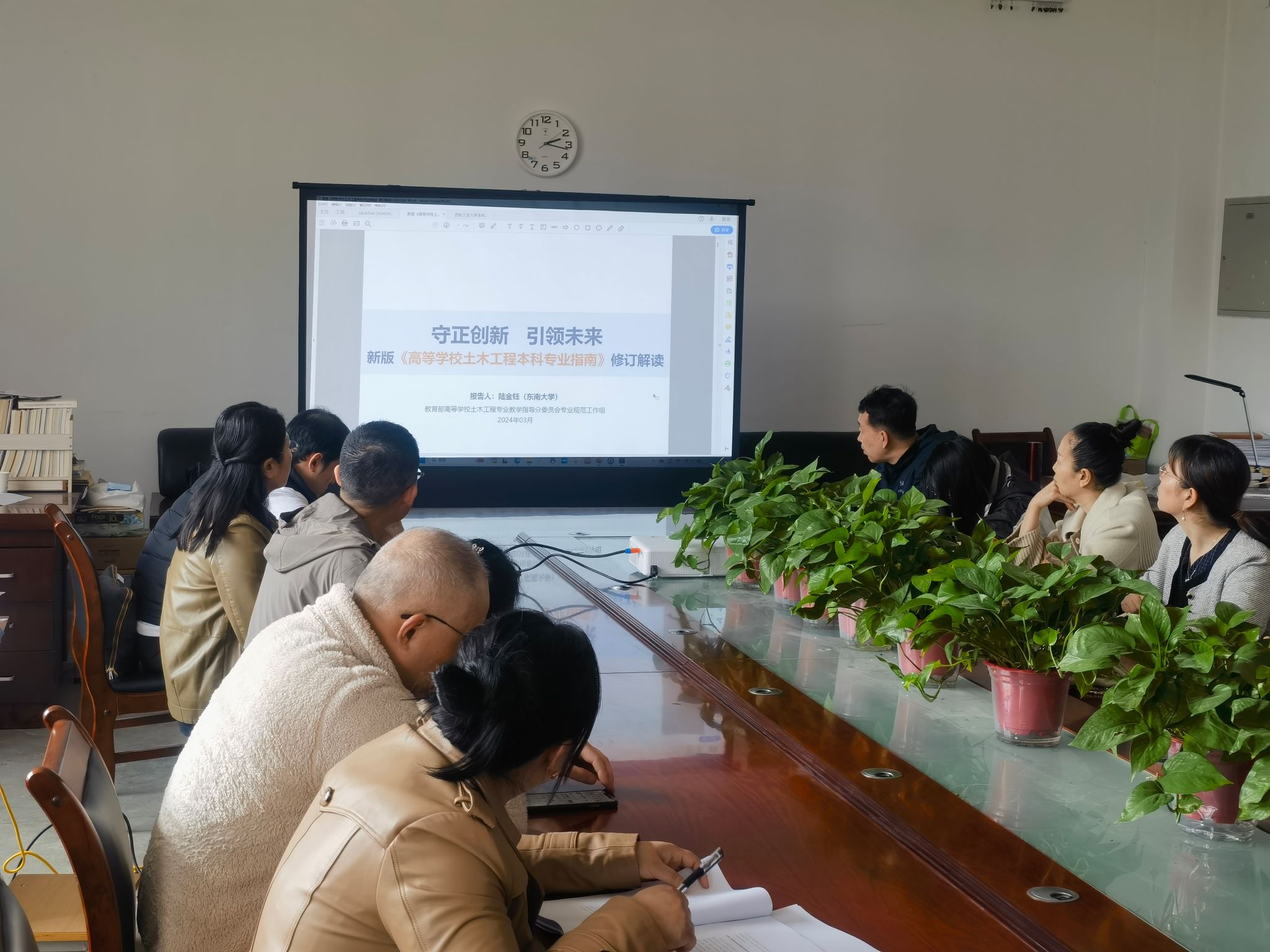 首先,会议集中讨论学习了《西安工业大学本科教育教学审核评估应知应会知识手册(通用版)》和《陕西省普通高等学校本科教育教学审核评估实施方案和指标体系(试行)》,通过对两个文件的详细解读和研讨,统一思想,凝聚共识,认真研究指标体系,把握评建要义和指标内涵,找准土木工程专业在本科教育教学审核评估工作中的着力点和关键点,切实提高土木工程专业人才培养质量。