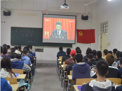 中国共产党第十九次全国代表大会开幕会于2017年10月18日上午9:00在北京举行。为了学习贯彻十九大精神,提高学生们的政治理论素质,建工学院党委组织全院教师学生代表近200人在教3-212观看了十九大开幕会直播。