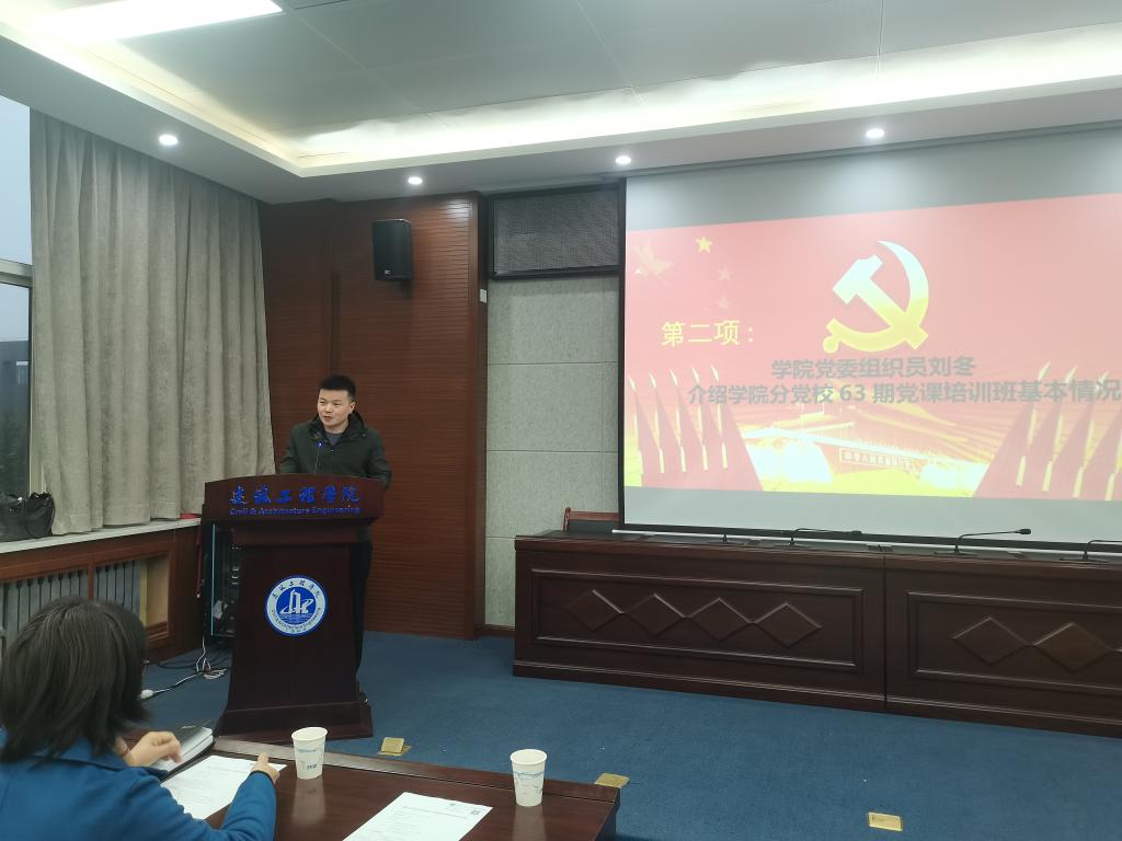 10月20日,建筑工程学院第63期“党的基本知识”培训班开班典礼在工4-204举行。学院党委书记刘慧萍,学院党务秘书刘冬及126名学员参加开班典礼。2020级本科生任晓伟主持开班仪式。