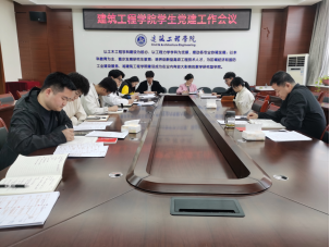 3月6日上午10:00,建筑工程学院召开学生党建工作专题会议,学院党委副书记、党委专职组织员、各学生党支部书记及支委参加会议,会议由学院党委副书记贾建利主持。