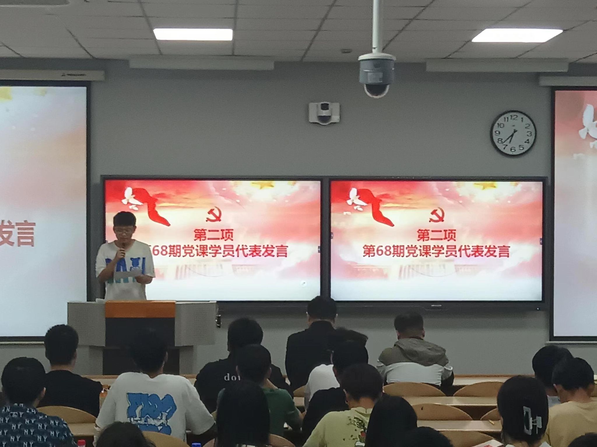 开班仪式上,主持人章诗涵介绍了党课的基本内容并宣读了课程纪律和管理规定。光电工程学院学员代表洪芳菲和建筑工程学院学员代表朱俊豪分别了发言,表明了自己参与本次党课的决心,激励大家珍惜本次党课的学习机会,用实际行动向党组织靠拢。