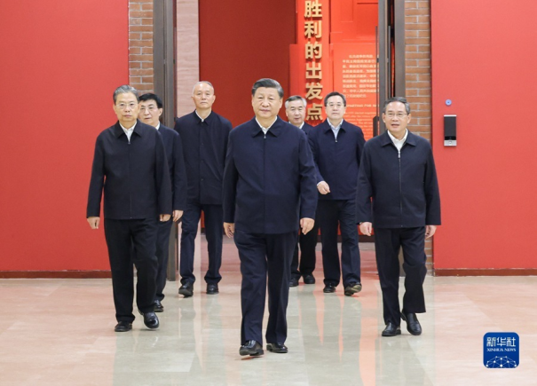新华社延安10月27日电 党的二十大闭幕不到一周,中共中央总书记、国家主席、中央军委主席习近平带领中共中央政治局常委李强、赵乐际、王沪宁、蔡奇、丁薛祥、李希,专程从北京前往陕西延安,瞻仰延安革命纪念地,重温革命战争时期党中央在延安的峥嵘岁月,缅怀老一辈革命家的丰功伟绩,宣示新一届中央领导集体赓续红色血脉、传承奋斗精神,在新的赶考之路上向历史和人民交出新的优异答卷的坚定信念。习近平强调,要弘扬伟大建党精神,弘扬延安精神,坚定历史自信,增强历史主动,发扬斗争精神,为实现党的二十大提出的目标任务而团结奋斗。