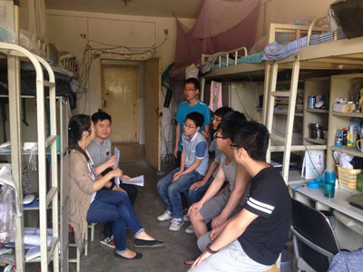 2016年5月11日,建筑工程学院2011级辅导员徐亦文、何鹏程赴2016届城乡规划毕业班宿舍开展第三轮毕业生就业指导谈话,并针对宿舍卫生开展检查工作。