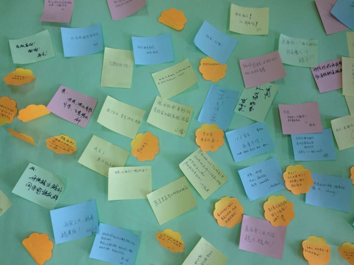 2016年5月16日,同学们来到建工学院多功能教室举办了简单而热烈的班会,同学们聚在一起再次唱响了大一入校时设立的“班歌”,再次回忆起当年订立的班规、班训。当辅导员老师将大一入学时,每个人“写给五年后的自己”的那封信返还给大家时,同学们都感慨良多,纷纷回忆起自己大学的生活,并提笔写下了自己最想留给母校的一句话。