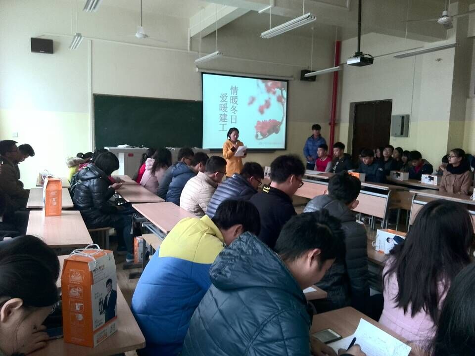 1月5日建筑工程学院阳光助学协会在工4-202组织开展了“爱暖冬日,情暖建工”活动。学院党委副书记张艳霞、各年级辅导员和家庭经济特殊困难学生参加了此次活动。