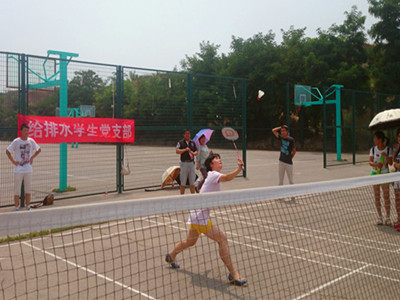 2015年6月18日中午,由建筑工程学院给排水学生党支部承办的师生羽毛球联谊赛在校羽毛球场举行。学院党委副书记张艳霞、给排水系主任赵平歌等位老师到场,部分老师与同学们展开了友谊赛。