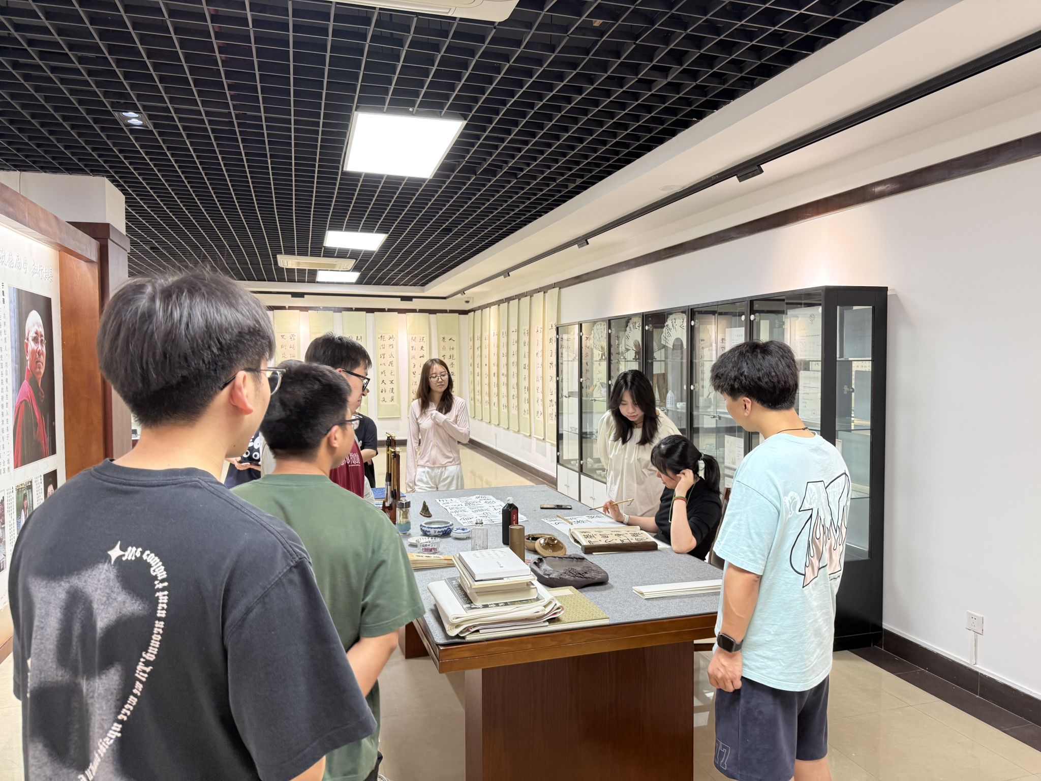书法艺术馆作为学校文化育人重要阵地,珍藏了我校著名书法家刘自椟和陈泽秦书法作品,涵盖篆、隶、行、楷等多种书体,展现了陕西近现代书法艺术的深厚底蕴。在讲解员带领下,支部成员认真观摩馆藏珍品,了解书法名家的艺术风格与创作历程,并开展书法临摹互动体验,切身感受笔墨之间的文化传承。