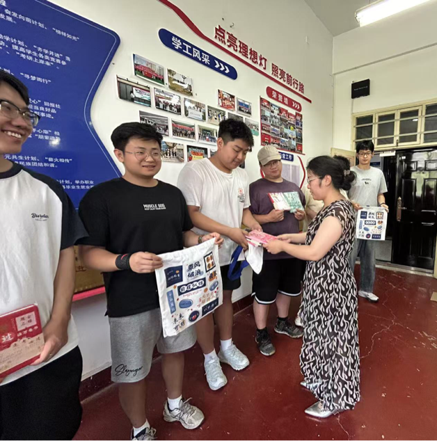 在轻松愉快的氛围中,老师为参赛运动员们分发了定制纪念品,同学们脸上洋溢着喜悦的笑容,彼此分享着比赛中的精彩瞬间和难忘经历。现场热烈的气氛和欢笑声充分展现了建工学子团结友爱、积极向上的精神风貌。