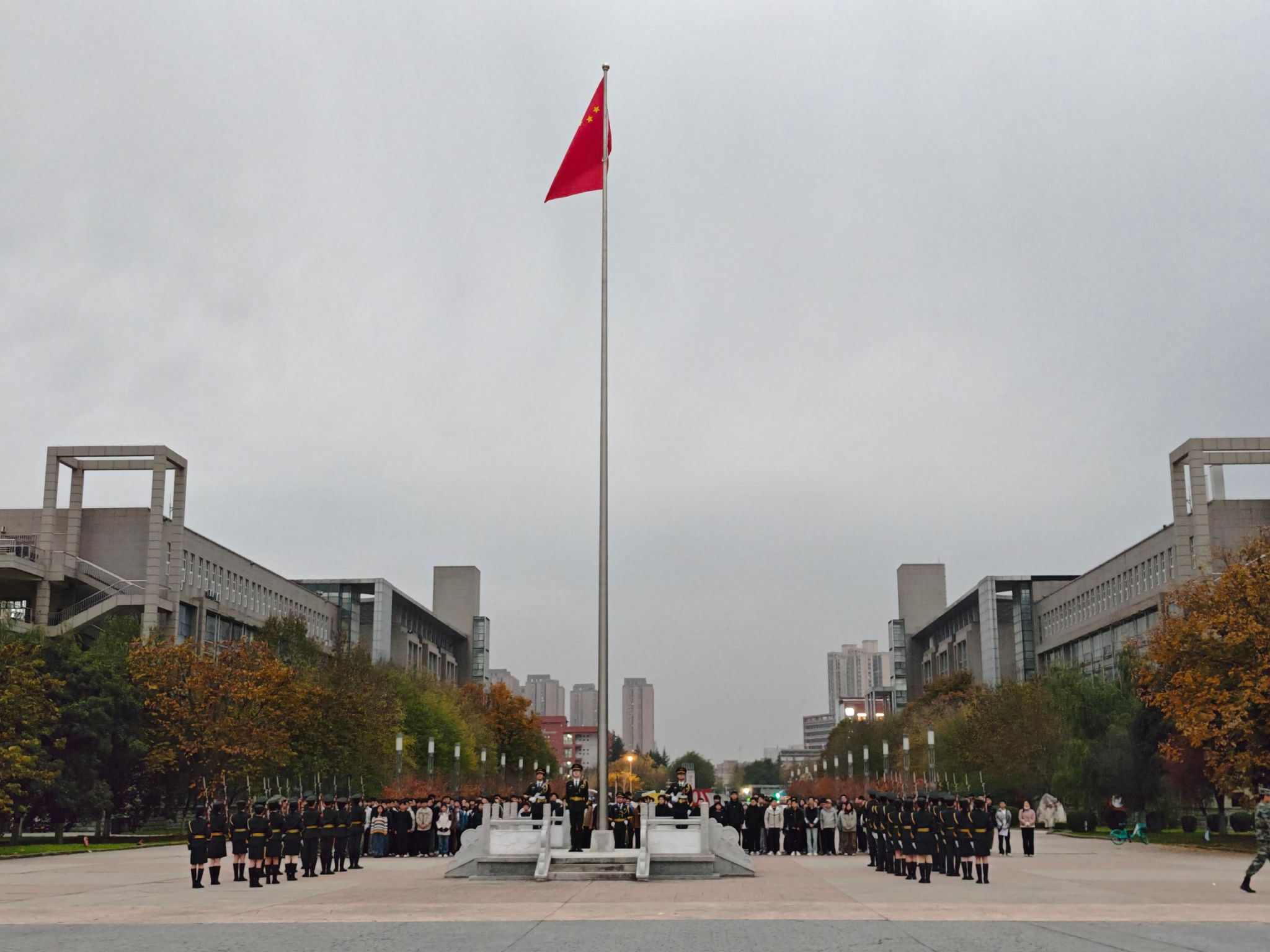 11月10日清晨,建筑工程学院组织全体学生在经纬广场参加升国旗仪式,全院师生参加。旨在加强爱国主义教育,增强学生的集体荣誉感和纪律意识。
