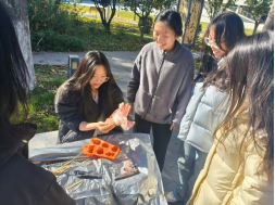 活动当天的银杏大道,俨然成为充满欢声笑语的创意乐园!创作区前都排起了长队,不仅有建筑工程学院的本科生专注创作,路过的同学被有趣的手工体验吸引,纷纷加入;带着孩子的家长们也驻足停留,亲子互动温馨十足;几位外国同学更是被独特的手工形式打动,在志愿者的耐心指导下尝试调和石膏、创意上色,尽管语言有差异,但创作的快乐不分国界。
