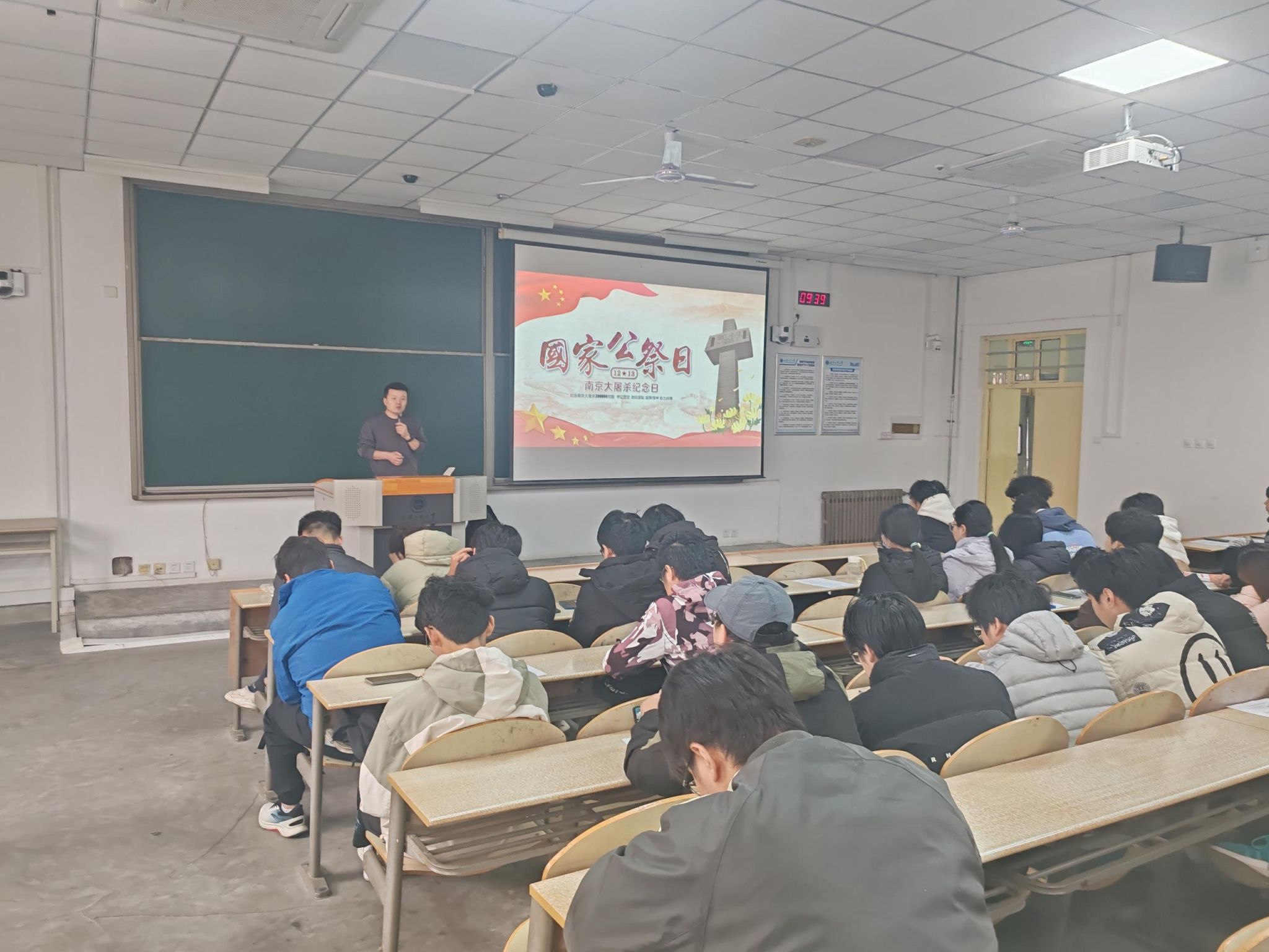 活动开始,刘冬围绕国家公祭日的历史背景与设立意义展开讲解,带领同学们回望那段山河破碎、同胞受难的沉痛岁月,字字句句激荡着爱国情怀。他勉励大家铭记历史伤痛、珍视当下和平,把对遇难同胞的缅怀之情,转化为“以史为鉴、振兴中华”的不竭动力。