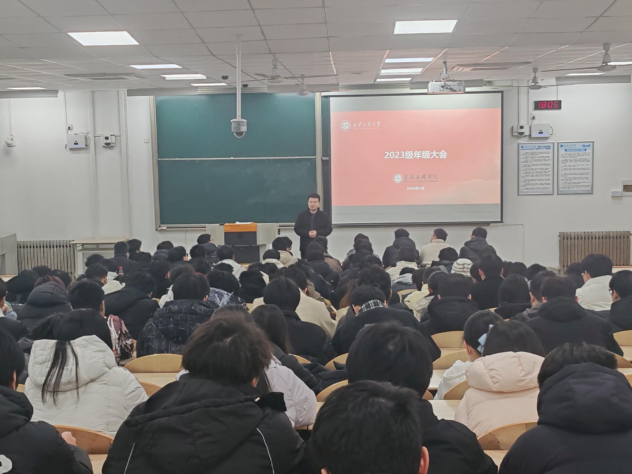 此次年级大会的召开,不仅为建筑工程学院2023级学生本学期的校园生活画上了圆满句号,更让同学们清晰了解了寒假安全注意事项和新学期发展要求,为同学们度过一个安全、有意义的寒假提供了有力指导,也为学院新学期学生管理工作的有序开展奠定了良好基础。