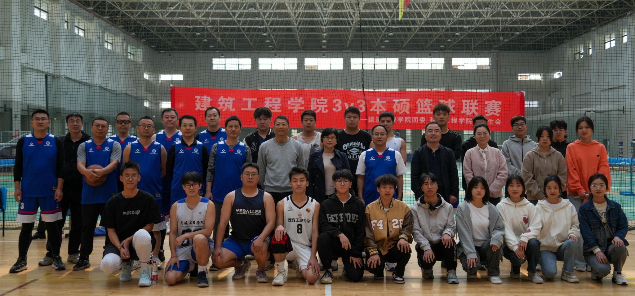 为贯彻落实党的二十大报告提出的“广泛开展全民健身运动,加强青少年体育工作,促进群众体育和竞技体育全面发展,加快建设体育强国”要求,引导师生加强体锻炼,10月27日中午,建筑工程学院在未央校区体育馆成功举办了一场师生篮球友谊赛。