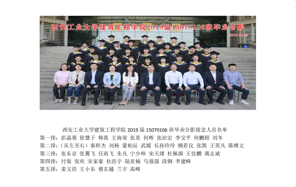 西安工业大学建筑工程学院2019届15070106班毕业合影留念