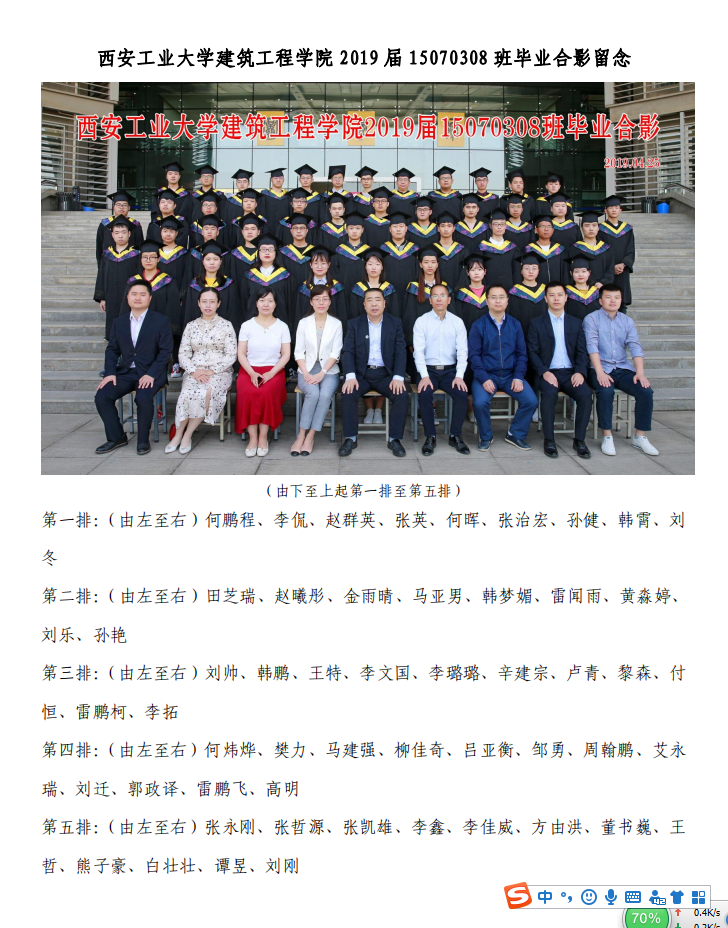 西安工业大学建筑工程学院2019届15070308班毕业合影留念