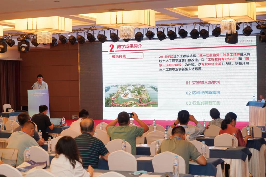 李成华主任做了题为“构建“三维立体”人才培养新模式,造就土木工程专业一流创新人才”的分会场报告,首先介绍了西安工业大学和我校土木工程专业的发展概况,然后系统介绍了近年来我校土木工程专业教学改革成效,土木工程专业在教学改革过程中将“把一切献给党”的兵工精神融入传统专业的升级改造,以“工程教育专业认证”和“国家一流专业建设”为外驱,以专业综合改革为内驱,积极开展土木工程专业创新型人才培养,构建“德智融合,产学合作,科教协同” 三维立体人才培养新模式,推动人才培养质量的稳步提升。