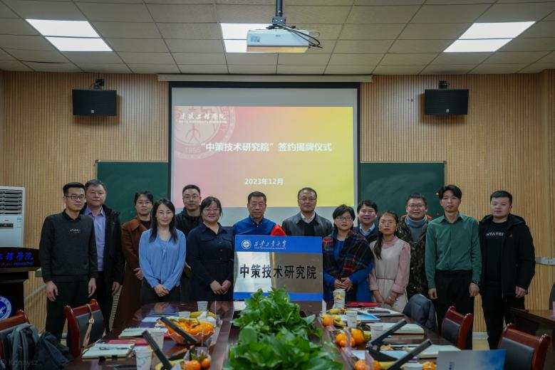 在双方共同见证下,校党委副书记马福、中策公司董事长强焱共同为西安工业大学中策技术研究院签约并揭牌。
