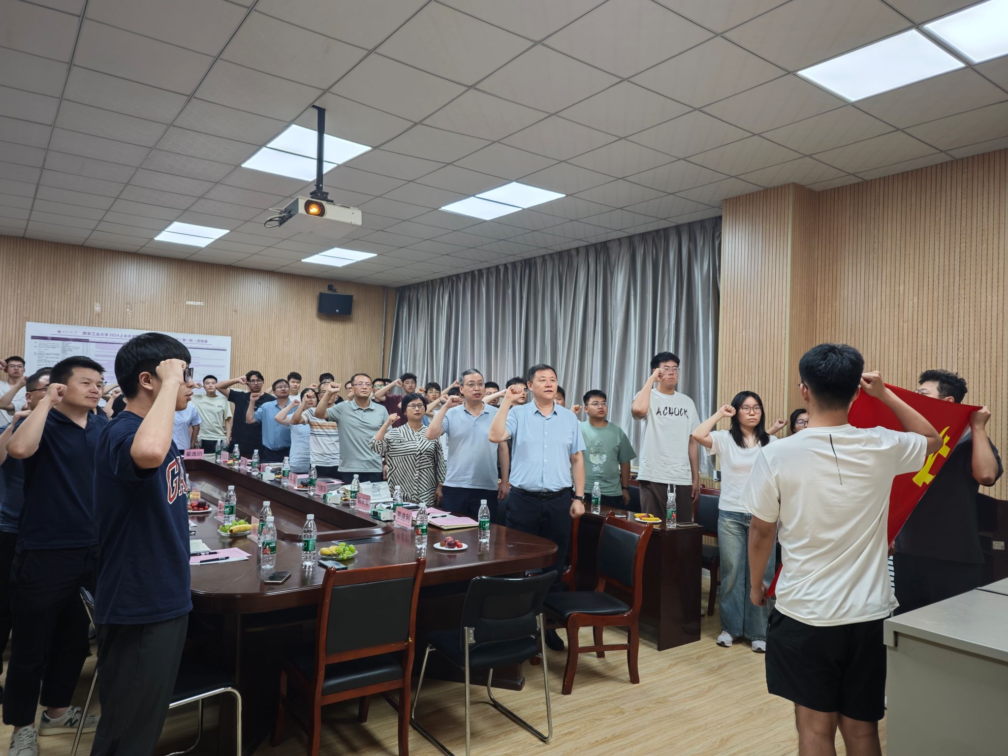 毕业生代表向学院赠送书法作品,表达对学院和母校的感激之情。最后,张浩飞带领全体毕业生党员重温入党誓词。铮铮誓词再次提醒毕业生们要时刻铭记党员身份,坚定理想信念,为实现中国式现代化挺膺担当。
