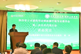 在议程的换届环节,模架专委会第一届主任委员何晖教授作工作报告,详细回顾了本届模板脚手架专业委员会的主要工作,充分肯定了模架专委会在推动行业技术发展与标准制定方面做出的突出贡献。陕西建工模架科技有限公司董事长陈英杰对第二次会员大会的筹备工作进行了详细汇报,为大会的顺利召开奠定了坚实基础。在选举环节,会议以公开、公正的方式选举产生了第二届委员会成员。陕西昌宜科技有限公司总经理赵坤峰宣读了《模板脚手架专业委员会换届管理人员选举办法》,陕西云端森德实业有限公司总经理朱军与陕西天利成模架科技有限公司董事长张怀安分别宣读了第二届委员会候选人名单与第二届委员会正副主任委员名单。经过严格的投票程序,西安工业大学建筑工程学院院长黄华教授当选为主任委员并作表态发言,新一届委员会将继续推动行业的技术革新,加强会员单位间的沟通与协作,并与中国模板脚手架协会及其西北分会紧密合作,组织全国性专题学术和技术交流会议,围绕模架技术的最新发展和行业需求,组织富有实效的各类学习、观摩、技术交流活动,打造系列品牌会议,提升学术交流的成效,为陕西省土木建筑行业的发展贡献力量。