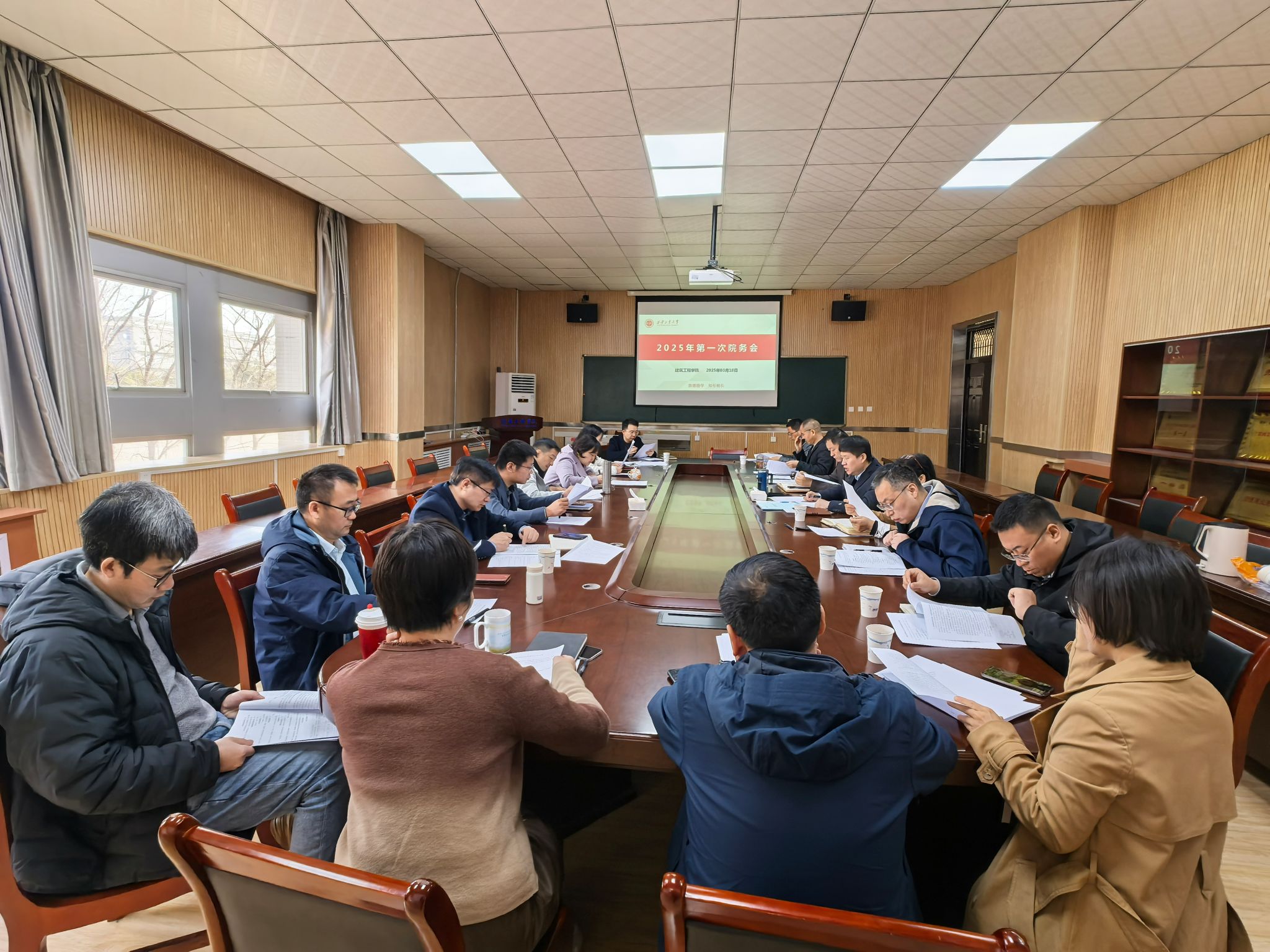 3月18日,建筑工程学院在教四楼202会议室召开院务会,布置2025年重点工作,学院领导班子成员、办公室主任、各系室正副主任、团队负责人、学院督导组组长、学工部主任参加会议。