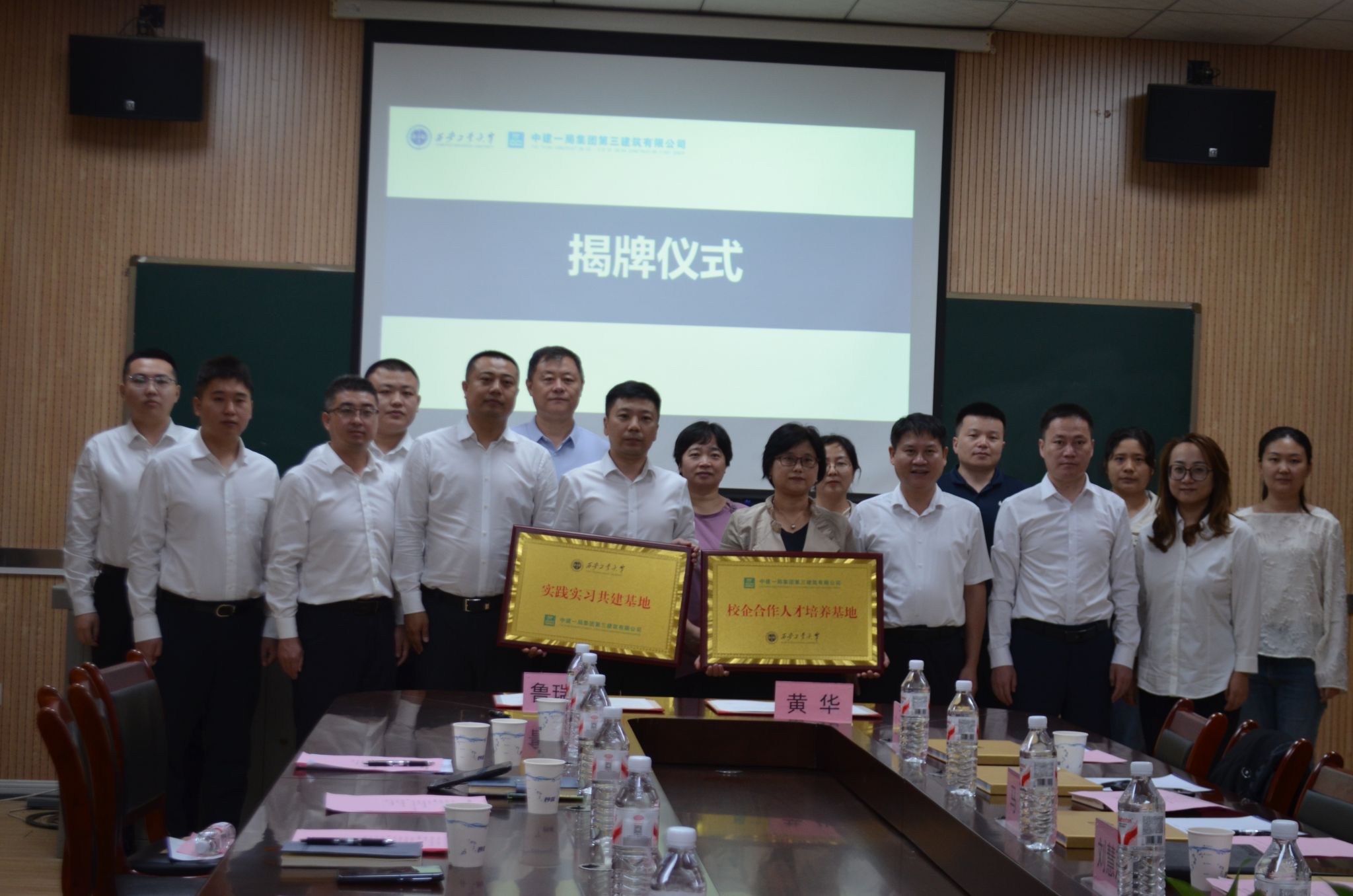 在双方共同见证下,建筑工程学院院长黄华与中建一局三公司西北分公司副书记鲁瑞军共同签署就业实习基地合作协议,并互赠校企合作牌匾。