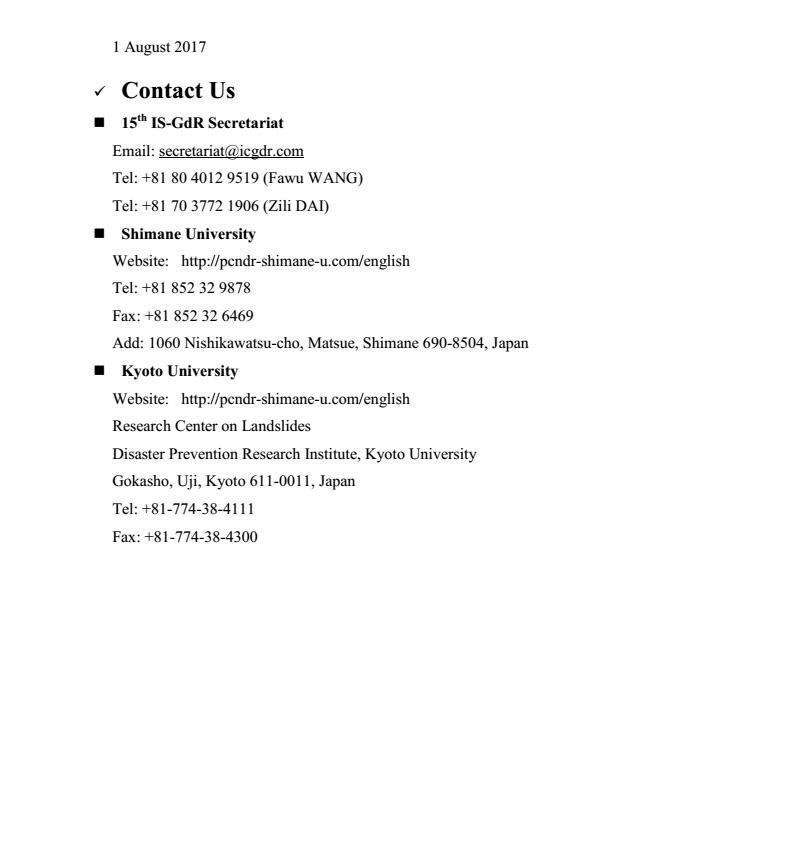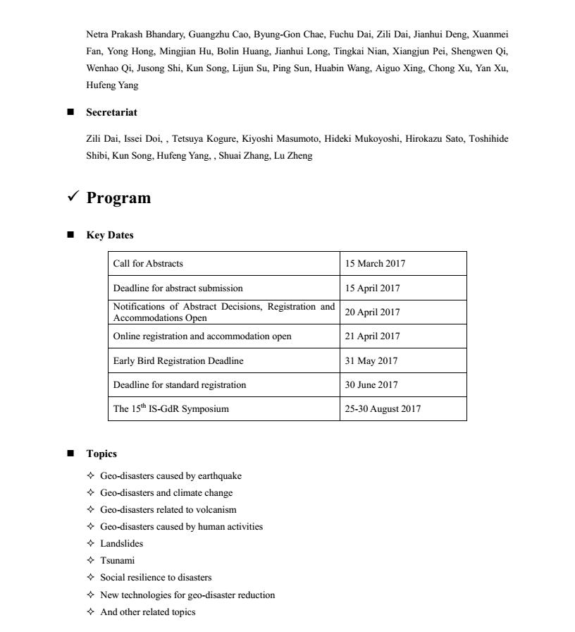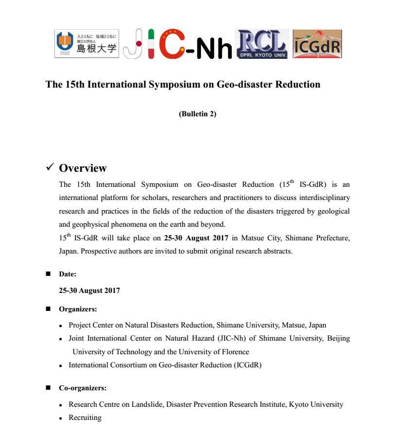 [学术会议]第十五届国际地质灾害减灾会议