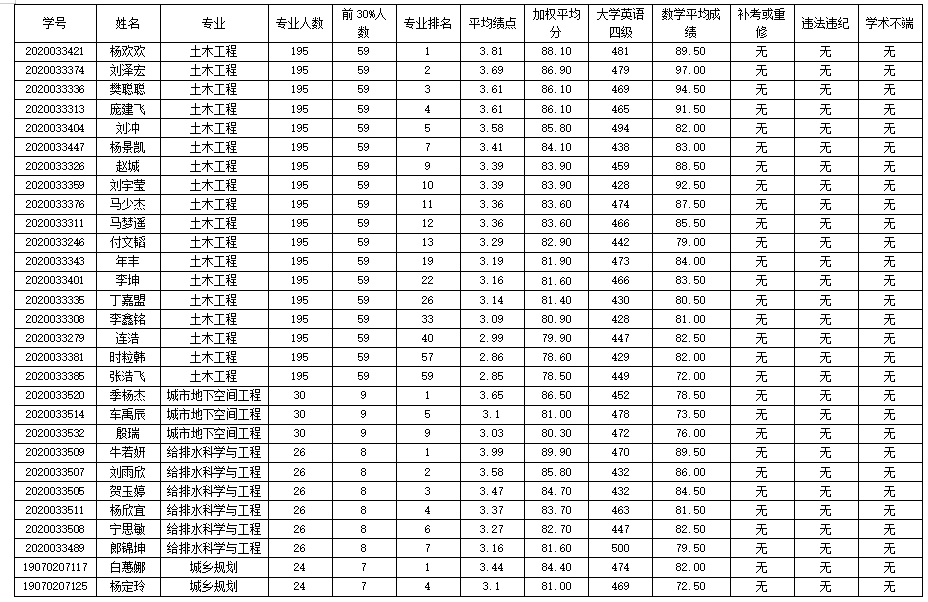 按照《关于做好西安工业大学2024年推荐优秀应届本科毕业生免试攻读研究生工作的通知》《西安工业大学建筑工程学院推荐免试攻读硕士研究生实施细则》工作要求,现将符合推免基本条件的2024届本科毕业生名单公示如下: