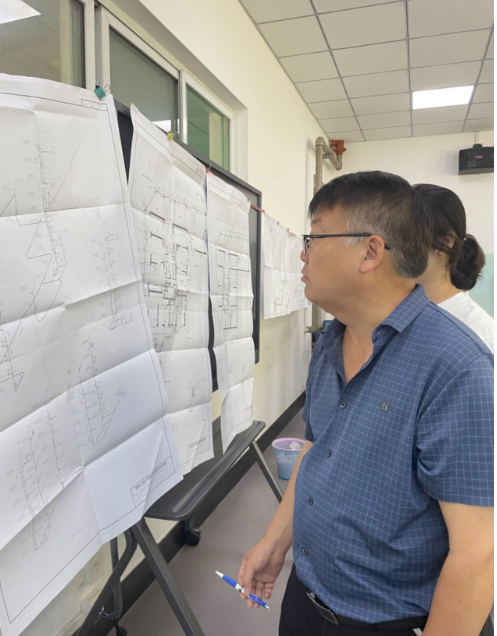 在答辩过程中,所有图纸均悬挂于教室两侧进行展示,学生通过PPT结合图纸汇报了四年来的学习成果。葛万斌高工利用多年的实践经验,现场对学生的成果进行点评,并与答辩组的教师进行探讨交流。20级的学生通过观摩加深了对专业的认知,对后续的专业课学习以及即将面临的毕业设计提供了巨大的帮助。