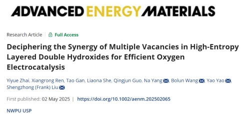 近期,我校姚尧教授团队在国际顶级期刊《Advanced Energy Materials》(近五年影响因子为27.3)上发表“Deciphering the Synergy of Multiple Vacancies in High Entropy Layered Double Hydroxides for Efficient Oxygen Electrocatalysis”的研究型论文。