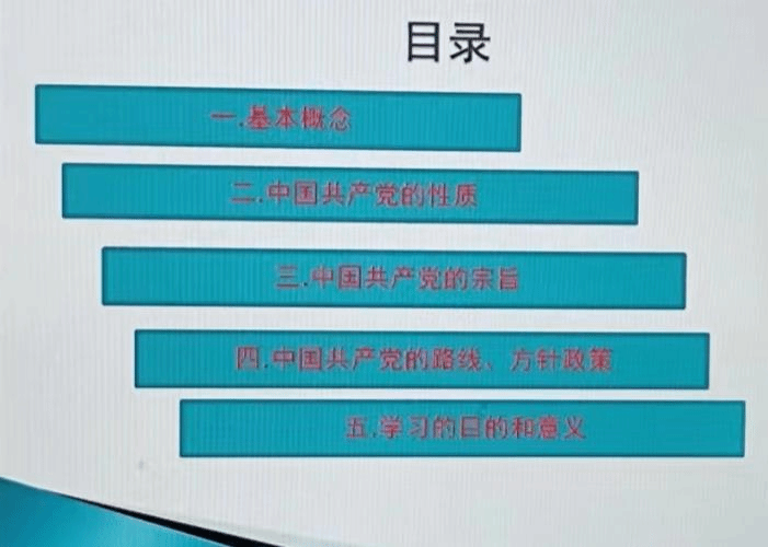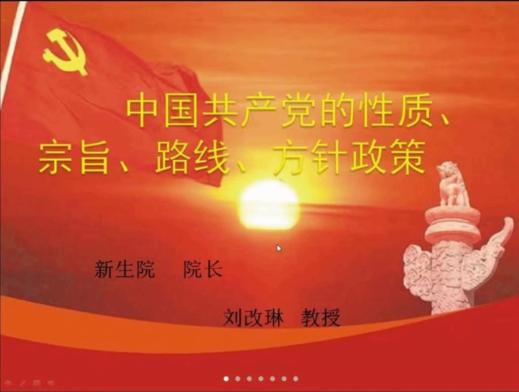 刘改琳老师通过对中国共产党的性质、宗旨、路线及方针政策等方面进行解读,让学生们了解党的基本知识内容和发展,明确党的目标。
