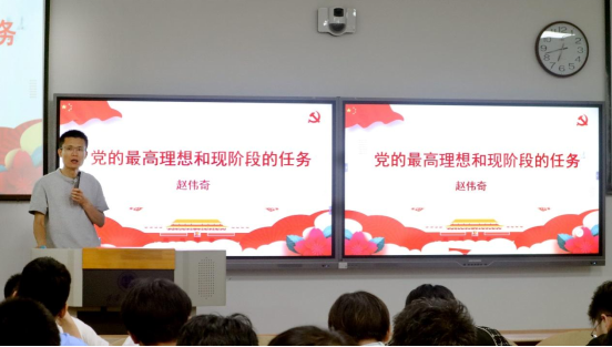 赵伟奇从中国共产党的性质、党在社会主义初级阶段的基本路线、全面建成小康社会三个方面为同学们进行了深入的讲解。赵老师在授课中不断强调“党的最高理想和最终目标是实现共产主义”,他还介绍了党在社会主义初级阶段的基本路线,让同学们对基本路线有了更深入的认识。最后,他从我国全面“脱贫攻坚战”取得显著成效说起,以同学们身边的变化为例,为同学们阐述了党在“全面建成小康社会”的艰苦奋斗,让同学们坚定入党的理想信念,以实际行动树立正确的入党动机,争取早日加入中国共产党。
