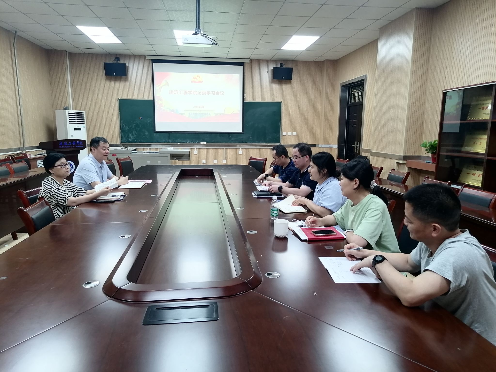 6月6日,建筑工程学院在教4-202召开党纪学习教育专题会议,学院党委书记、党委副书记、纪委委员及全体辅导员参加会议,会议由学院纪委书记贾建利主持。